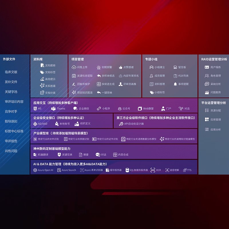 医疗器械产品上市前,,,,要熟悉严格与繁复评审标准,,,,整理分析监管机构指导文件中的海量信息。。。企业急需一个智能化解决方案,,,提升知识管理效率,,,,提高评审通过率,,以提升其市场竞争力。。。